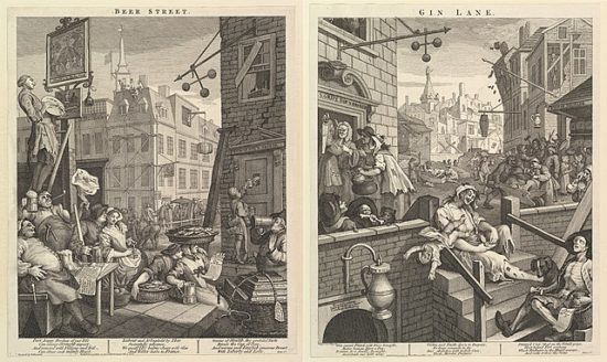 日本は、「ジン横丁」に描かれた18世紀のイギリスに酷似している。当時、産業革命の嵐が吹き荒れるなか、「囲い込み」政策で土地を失った流民が、荒廃した貧民街で安酒のジンをあおり、正体を失う。