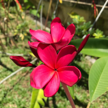 日本は桜の季節を迎えたが、我が家の庭も花盛り。そもそも南国に「季節」という概念はない。年中いろんな花が咲き乱れている。コロナやら戦争やら、不穏な世の中ではあるが、花々を眺めて心が癒される。
