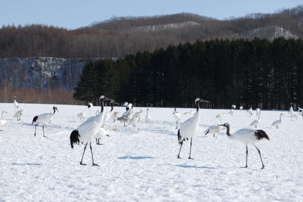 2月11日早朝、私が泊まっていた旅館のすぐ隣にある丹頂観察センターに、何と珍しく200羽以上の丹頂鶴が飛来した。