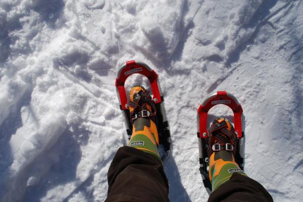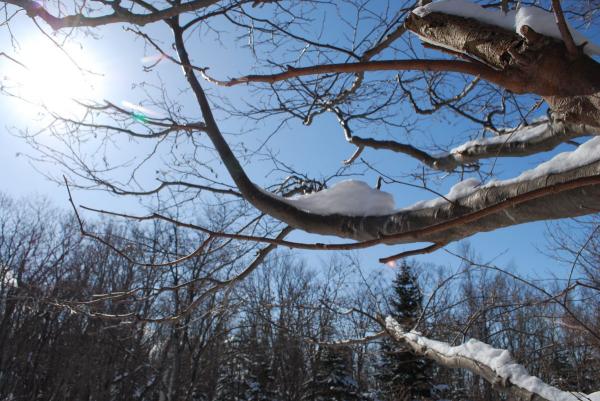知床自然センターの裏手にある入り口でかんじきに履き替え、雪道を一歩二歩サクサクと歩き出す。最初は慣れないため歩き方がぎこちないが、百歩も歩けば、だいぶなれ、スピードもついてきた。
