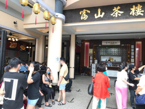 「富山茶楼」の店頭は席待ちの客でいっぱい。番号札をもらって待つこと20分、ようやく席に案内される。休日の飲茶は、華人家族一家団欒のひと時である。ブランチ感覚でゆっくりお茶を啜って点心をつまむ。あの騒めきといい無秩序さといい、なんと微笑ましい光景だ。