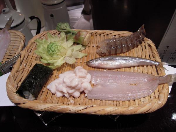 まず、「沼津 魚がし鮨」で軽く刺身や寿司をつまんで、2軒目は天ぷらの「神田猿楽町 天政」ののれんをくぐる・・・2軒とも、味はまずまず。