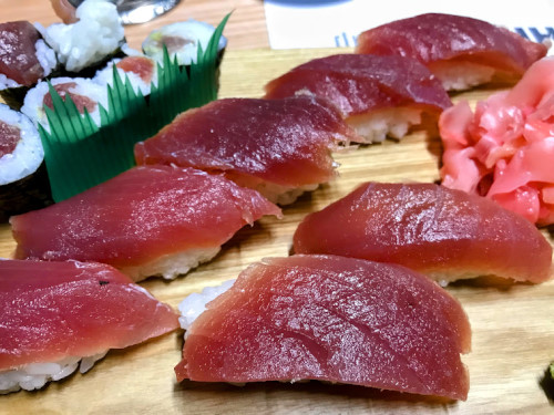 たまたま休み直前で品切れもあって、店主が申し訳なさそうだったが、それでも十分に満足。マグロ専門業者だから、やはり締めくくりはマグロ握り寿司と漬け丼。ボリュームたっぷりで美味。