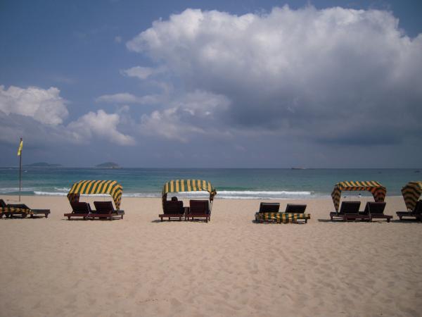 昼過ぎ、亜龍湾に位置する三亜マリオット・リゾートにチェックインを済ませると、すぐにビーチへ向かう。暑いせいか、食欲がない。ビーチで軽くサラダ1品を食べて、読書タイム。溜まった新聞や「日経ビジネス」に目を落としながら、睡魔に襲われる。