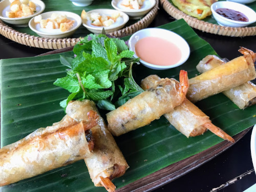 ベトナム料理といえば、春巻き。よく知られる生春巻き(ゴイクン=Goi cuon)と揚げ春巻き(ネムザン=Nem ran、チャーゾー=Cha gio)以外に、蒸し春巻き(バインクォン=Banh cuon)やからし菜春巻き(クオンジェップ=Cuon diep)もある。