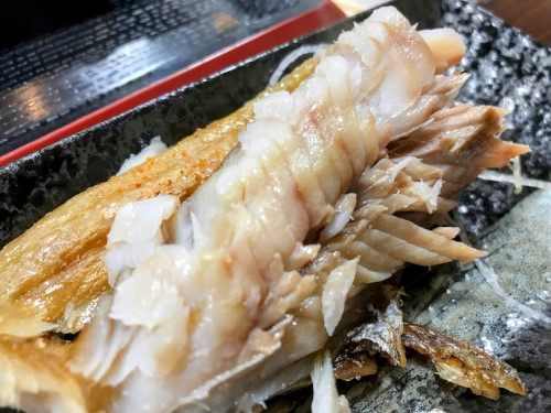 味も素晴らしい。骨までしゃぶりたくなる。いや、正確にいうと、骨せんべいだ。小骨や頭は程よい焦げ目がついてカリッと香ばしいから、バリバリと胃袋に収めてしまう。運転中でノンアルコールビールしか飲めないのが残念。