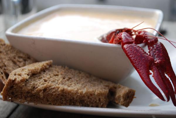 献立は、ザリガニのクリームスープ、ノルウェー産シーフードミックス、それから、トナカイサラミとアプリコットのピザ。