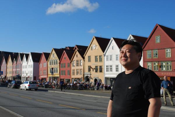 ブリッゲンは、ノルウェー語で「岸壁」あるいは「埠頭」という意味で、ハンザ同盟時代のドイツ人街だった地区に、奥行の深いカラフルな木造倉庫が立ち並んでいる。建物は伝統的な技法で修復されており、現在は表側にレストランや工芸品店、ブティックが開設され、奧は芸術家たちの工房として使用されている。いわゆる上海の「新天地」のような場所だ。しかし、「新天地」には決してなっていない。旧天地のまま修繕されているだけという感じだ。