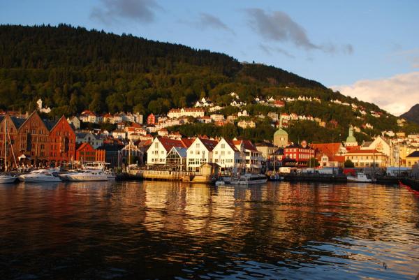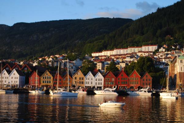 ブリッゲン地区(Bryggen)は、ベルゲン港に面した三角屋根の木造のカラフルな建物が並ぶ地域である。ベルゲンのシンボルとして、1979年に世界遺産に登録された。