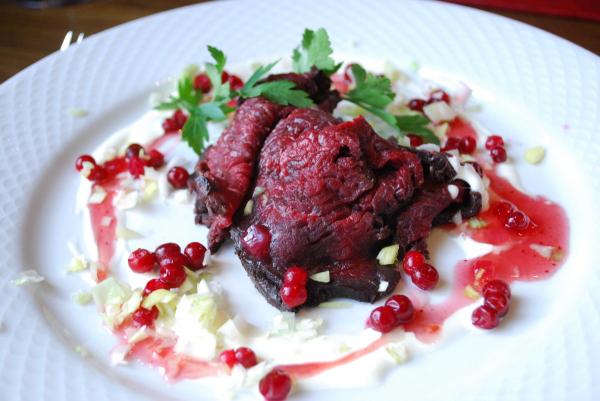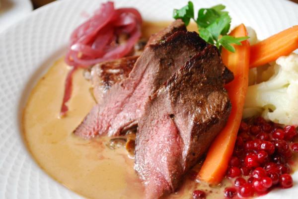●トナカイのヒレ肉、野菜とレッドオニオン、チャツネ添え