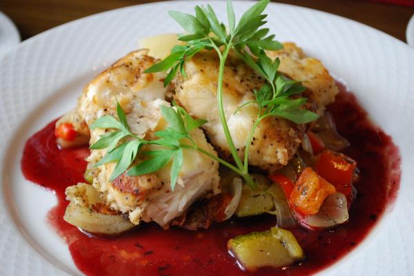 ●アンコウの胡椒風味仕立て、ズッキーニ添え