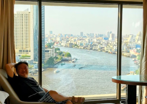 午後、チャオプラヤ川沿いのロイヤルオーキッド・シェラトンホテルにチェックイン。久しぶりのバンコクで、お上りさん定番のリバービュー部屋を取り、50代後半の自分にぴったりな夕陽風景を眺め、センチメンタルな気分に浸りたい。