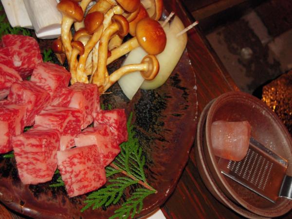 飛騨料理の代表格といえば、飛騨牛。高山市内のレストランや飛騨の温泉宿では、必ず顔を出す料理でもある。サシ(霜降り)は高級和牛の象徴といわれているが、最近年を取ったせいか、このサシを油っぽく感じ、とても苦手になった。