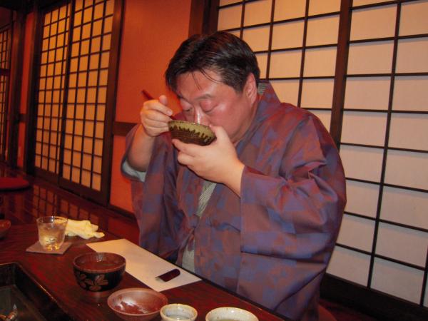 川魚の刺身。これは、川の水が綺麗なところでしか食べられない。大鱒や鯉など、中国では絶対に無理だという川魚料理が運ばれてくると、思わず感心・・・