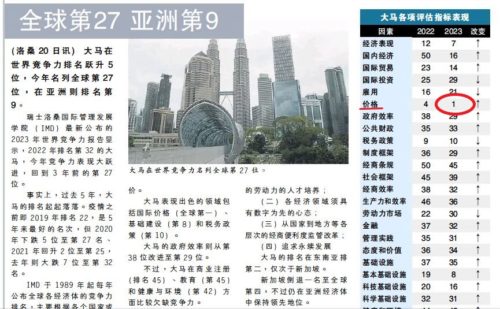 一方、マレーシアは世界競争力ランキングでは27位で、35位の日本を凌駕している。面白いことに、価格競争力部門では、マレーシアはなんと世界1位に浮上した。私の実感もぴったりそれに合っている。価格競争力とは、同クラス・同種の財・サービスにおいて性能や品質等を比較して、それらを価格と照らし合わせた際の価値のこと。要するに「コスパ」といったところだ。
