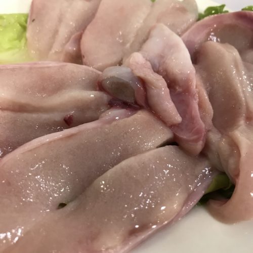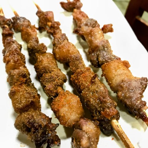 羊の睾丸をいただく。ここの羊肉は独自ルートでほぼ毎日仕入れている。「熱気」と言って冷凍せずフレッシュのまま出しているので、格別の美味しさである。
