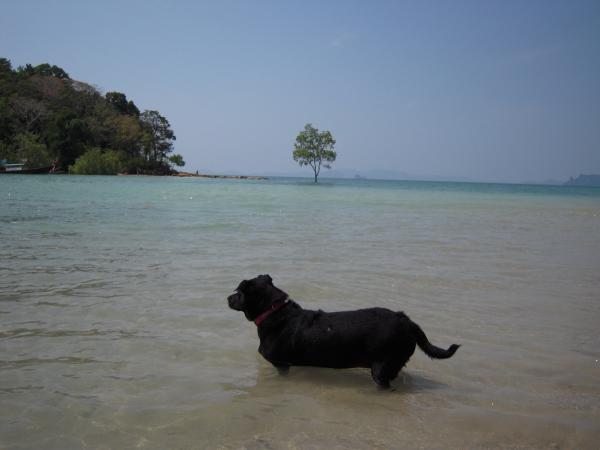 ビーチを散歩していると、犬と一緒に日光浴中のおばさんに出逢い、雑談が始まった。フィンランド人、寒い北欧よりも暖かい南国・タイに魅かれての移住。