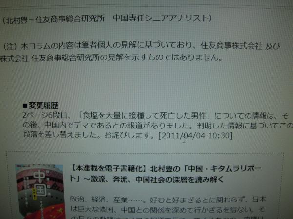 私が日経ビジネスに指摘し、誤報の訂正を求めた件、「2011年03月28日 日経ビジネス『デマ』引用か、しかも『塩買い占めデマ』レポート」に対する日経側の回答は、一言お詫びもなく、外交辞令的な応酬と単なる「追記」にとどまっていた。