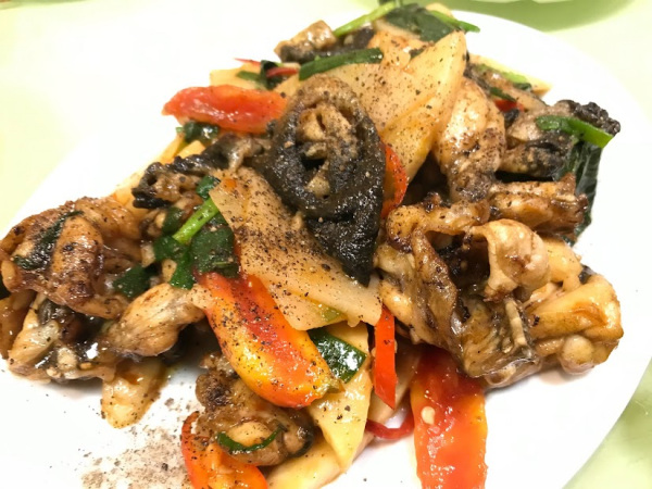 蛇肉はカエルの肉に似ているということもあって、最後に番外編の食べ比べとしてカエル料理も注文。予想通りの対比結果で、蛇肉がカエルよりも繊細だったことが確認できた。