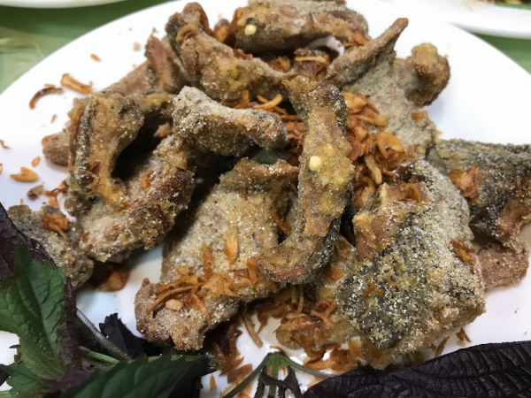 焼鳥の場合、骨入りつくねがあるように、蛇も同じだ。骨せんべいという食べ方もある一方、蛇は小骨が多いので、一層細かくしたうえでひき肉をまぜてつくねにしたほうが美味しい。さすがベトナム料理だけに、春巻きという発想が生まれたわけだ。ハーブ類とのハーモニーは抜群だ。