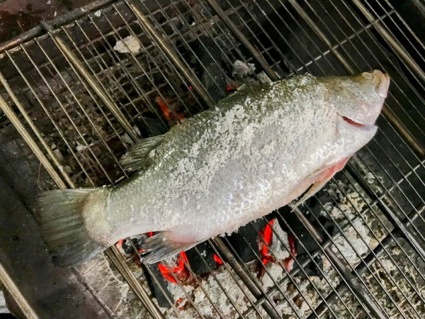 魚はシーバス(スズキ)。やはり、単純に塩焼きがいい。大きな魚を焼き上げるのに結構時間がかかるので、待っている間にいろいろ食べたり飲んだりしていると、魚にたどり着くまではほぼ満腹状態だ。魚の肉がプリプリして絶品だ。シーフードをお腹一杯食べられて幸せだ。