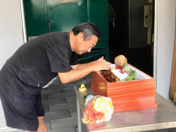 午前10時30分、マレーシア在住の友人であり、獣医師・動物医療グリーフケアの第一人者である阿部美奈子先生が遥々とクアラルンプールから弔問で来宅。丁寧にゴン太の手形を取ってくれ、一緒に最後の時間を過ごした。