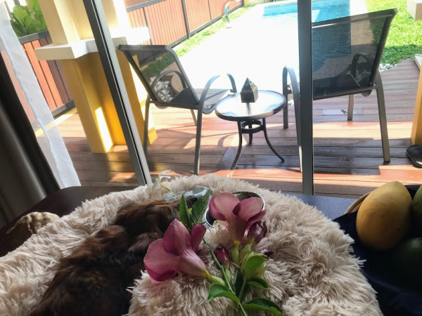 2024年3月13日、ゴン太とお別れの日(荼毘の日)。朝からゴン太を1階のリビングへ移動。ゴン太は大好きな庭をもう一目見ようとわずかに目を開けてくれた。