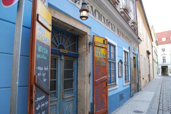 夜のコンサートを控えて、遅めの昼食を取るために入ったのが、「ウ・モドレー・カフニチュキ(U modre Kachnicky)」。日本大使館近くにある、チェコ伝統の鴨料理やジビエ料理の専門店で、首相や有名人も訪れるという。