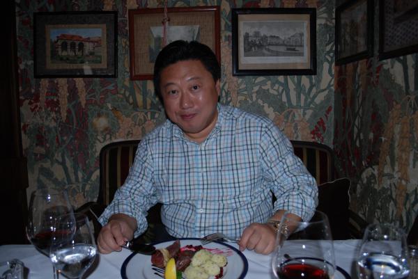 「野生鴨の胸肉プラハ・ハム入りクランベリー・ソース、茹で芋パン付き」。――普段日本では野生の鴨はなかなか入手困難で、真鴨のオスと家鴨(あひる)のメスを掛け合わせた雑種である「合鴨」しか食べられないので、迷わずこの一品を注文。