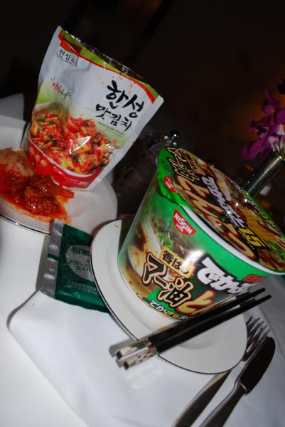 といっても、毎食のように肉が続くと胃袋がつらくなる。そこで、ソウルから持参したキムチや上海から持参したカップ麺の出番になる。