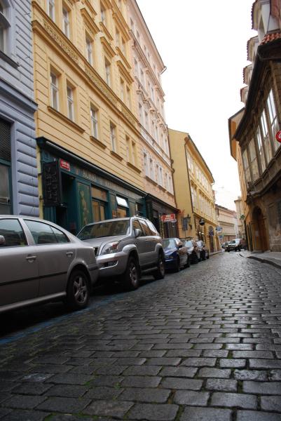 石畳みの道路を歩くのが、チェコ旅行の楽しみの一つだ。チェスキー・クルムロフはほとんどすべての道路、プラハの市街地でも目抜き通りを除いてほかの道路はほぼ石畳みになっている。