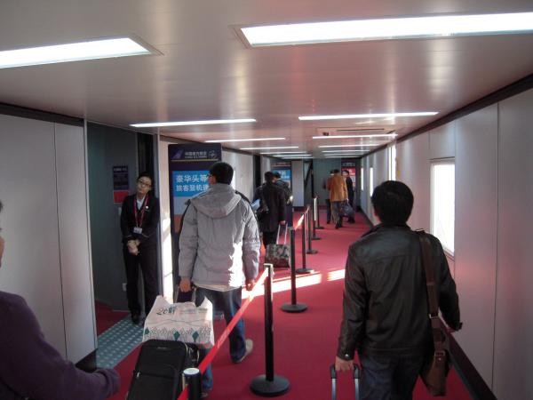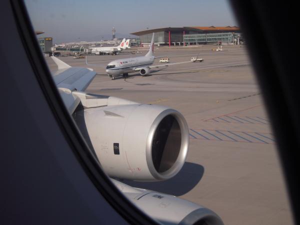 通常の便よりも搭乗開始と締切時刻が早く(乗客数が多く、所要時間が長いため)、9時30分発の便に乗るために7時に宿泊先の北京ケンピンスキーを出発しなければならない。