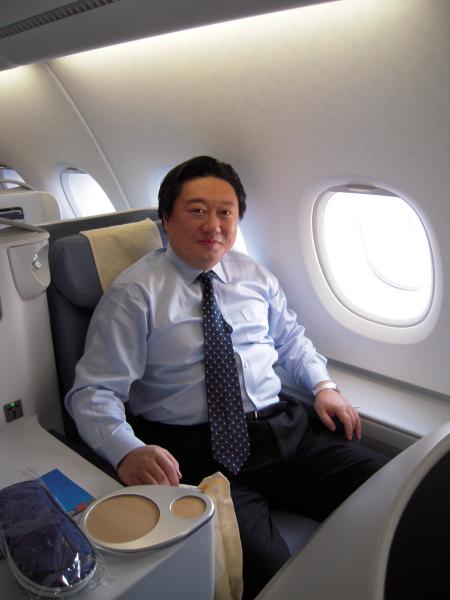 8時30分、出発1時間前から搭乗が始まる。ジャンボ機のB747と違って、A380の場合、アッパーデッキには専用搭乗ブリッジがあるため、機内の階段を使うことなく、直接に2階へアクセスできる。何だか飛行機よりも豪華クルーズ船に乗り込むような感じだ。