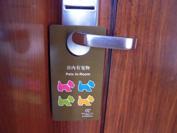 先日のプログにも書いたとおり、いま私が泊まっている無錫・太湖湖畔の「無錫霊山元一ヒルトン逸林ホテル」は、中国で珍しいペットOKの大手ホテルである。