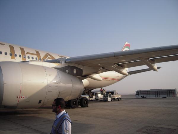 8月10日早朝7時、エティハド機がアラブ首長国連邦(UAE)の首都アブダビ国際空港に着陸した。ラウンジで朝食を取り、シャワーを浴びてちょうどいい時間にナイロビ行きのEY641便に乗り込む。