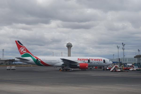 前夜台風騒動での慌しさがどこかに吹っ飛んで、心の余裕も出ると、シャンパンやらワインやらコース料理やら5時間弱のフライトはあっという間・・・。8月10日午後13時10分、予定通りケニアの首都、ナイロビ・ジョモ・ケニヤッタ国際空港に到着した。