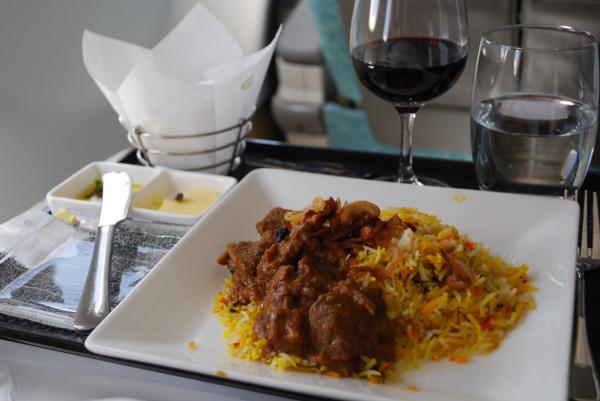 アブダビ発ナイロビ行きの便では、事前オークション(別途詳述)で800元の追加料金でビジネスクラスへのアップグレードを落札しているので、ゆったりした座席と豪華な食事を楽しみながら、アフリカへ向かうことができるのだ。