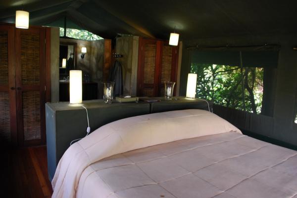 正確に言うと、英語では「テンテッド・キャンプ(Tented Camp)」といって、野宿同然の簡易テントではなく、電気、水、お湯、水洗トイレ、シャワー付きの豪華テントであって、レストランやバーまで完備し、機能的にはホテルに近いキャンプ場である。