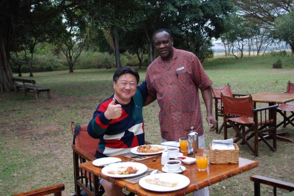 半日サファリでなければ、8時半にキャンプに戻ってくる。そこでゆっくりと朝食。担当のジョーンさんは今日も笑顔で迎えてくれる。「どうですか、朝のサファリ」。キャンプでは、食事(レストラン)担当、ドライバー兼ガイドそして客室係のバトラーには、それぞれ決まったスタッフがついている。それは最終的にそれぞれチップを渡すことになっているからだ。