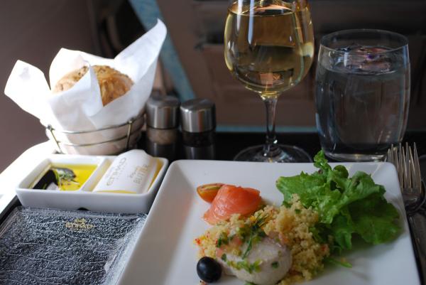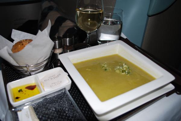 エティハド航空のビジネスクラスはレベルがかなり高い。食事やドリンク類は間違いなく日系各社を超えているし、中国系航空会社のファーストクラスよりもはるかに良い。サービスについては日系のようなベタベタ系ではないが、やるべきことはちゃんとやっているし、笑顔もよい。