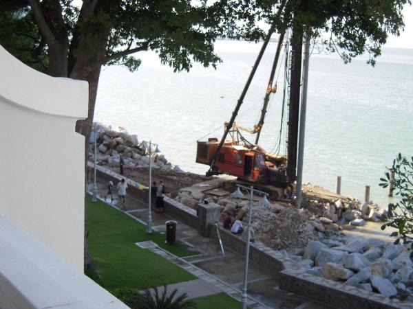 しかし、すべてが歴史となりつつある。E&Oホテル前の海では、埋め立て工事が騒音やほこりを立てながら進んでいる。街の地図を広げると、淡いグレー色で、将来に出来上がる広大な埋立地が表示されている。高速道路がちょうどホテルの前の埋立地を横切るようにカーブしている。