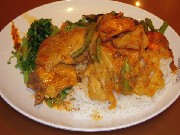 夕食はフードコートでマレー風カレーライス。一皿に数種の具材の自由盛り合わせで13リンギット(約360円)。マレーシアの外食は実に安くて美味しい。生活コストがどんどん上がる上海に比べると、クアラルンプールの優位性が著しい。