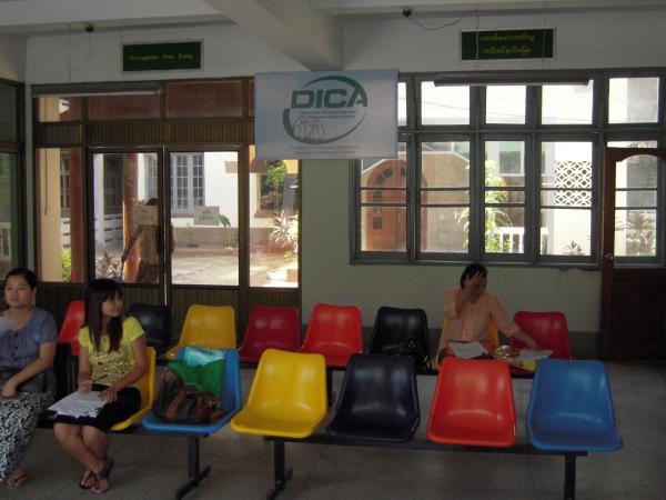 今日は、ミャンマー現地スタッフと会社設立手続きのため、朝から管轄官庁のDICA(Directorate of Investment and Company Administration 投資・企業管理局)に乗り込む。