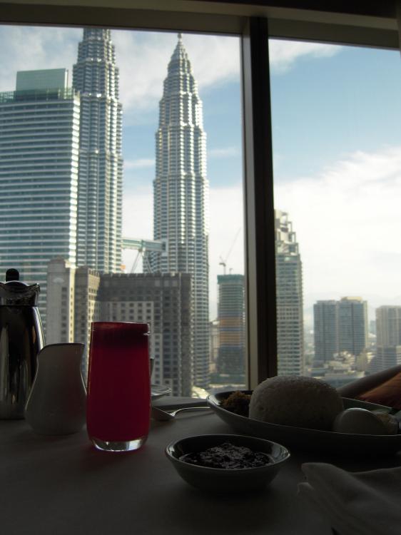 昨日まであった雨雲が去って、KLは早朝から晴れ(ルームサービス朝食風景)
