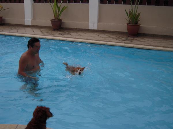 初泳ぎ 愛犬・愛猫 2014年01月05日2014年10月15日 S. Tachibana630 ハチは体がデカイけれど、水には弱い。今日はやっと初泳ぎ実現。 まず、浮き具に乗って水に慣れてもらう。次、体で水の感覚を覚えてもらう。いよいよ本場、ハイ行け!パタパタ泳げた。そして、自力で泳いで上陸。ゴン太もプールサイドで、「ワンワン、頑張れ!」と全力応援してくれた。 楽しい日曜日だった。今週後半から寒い、寒い日本出張だ。いまのうち、太陽といっぱい遊ぼう!