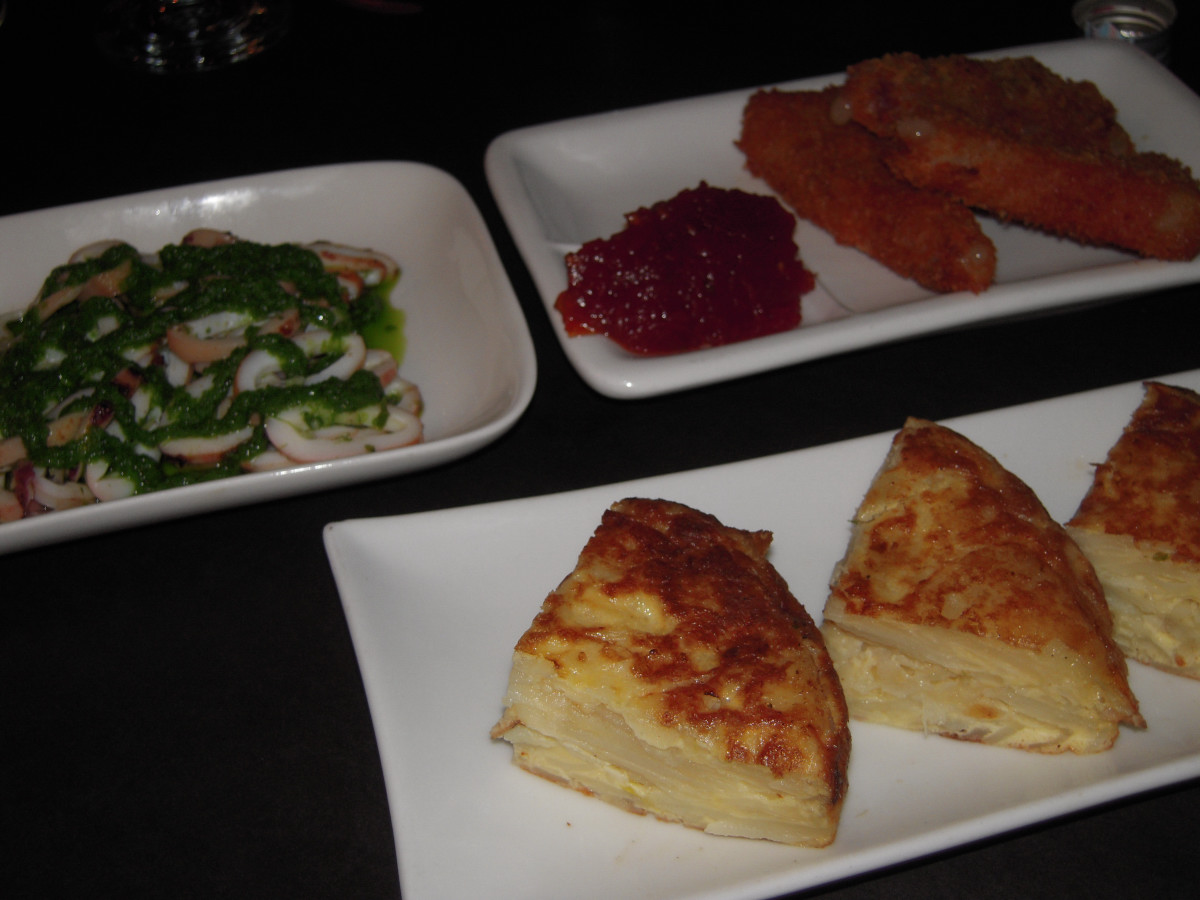 タパスも見逃せない。タパスといえばスペイン流のおばんざい。これもまた酒のつまみには最高。小イカのオリーブオイル煮やスペインオムレツなどの定番をつまみ、1本のワインがあっという間に消えていく。 メインの前にもう一品欲張りたく、ハーフボトルの赤リオハとソーセージを注文。