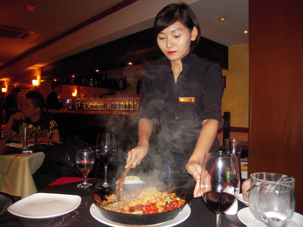 最後の締めくくりは、少々値が張るが、贅沢にイベリコ豚のパエリア。待つこと45分、フィナーレのパエリアが登場。