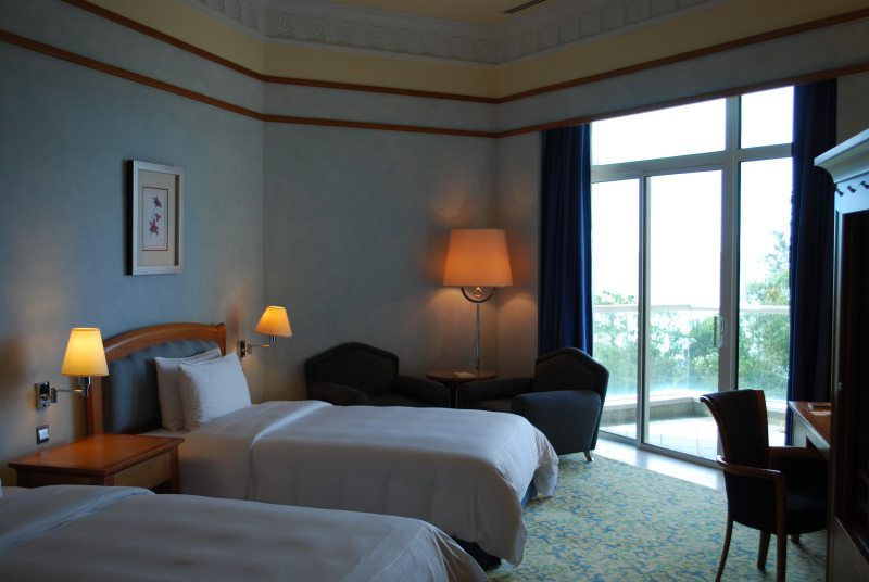 ホテル全体的に、とにかく大きい。日本人から見ればなんでここまで無駄なスペースを設けるのか、というくらい空間が大きい。廊下もエレベータホールも信じられないほど広い。誰も座らないのに、あちこち高級そうなソファが配置されている。