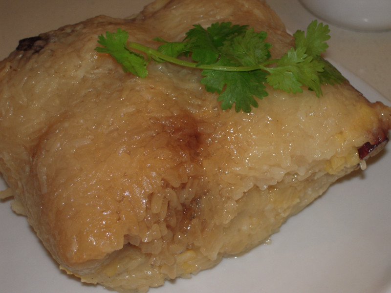 次は粽。香港流の粽はとにかく具沢山で贅沢な粽だ。ソースをかけて食べる。かなりボリュームがあるので、一つの粽は二人以上でシェアしたい。
