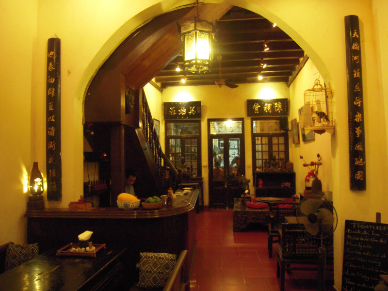 提灯はない。古き時代のベトナム伝統的邸宅がそのまま店に変身しただけに、ナチュラルなレトロ感がたっぷり。こりゃあ最高だ。ベトナムの地酒、ライスワインをまず注文する。中国の白酒に似ているが、米の香ばしさがより濃厚で芳醇さが際立つ。結構アルコール度数は高め。